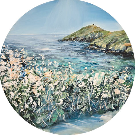 I’ve always wanted to ‘bottle’ that feeling of walking along the seashore and take it home with me, the only way I could imagine doing this was to paint it. I mainly work in acrylic or oil on paper, canvas and wooden panels. I often use circles that act as ‘portals’, allowing the viewer to step into the painting whenever they desire.