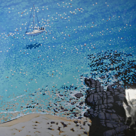 Gordon Hunt has been a practicing artist and designer for over thirty years, since leaving college with a degree in Graphic Design. He works from his studio here in Fowey. 'I am particularly interested in the light effects of sunshine on water, giving sparkling reflections and silhouettes, resulting in strong contrasting colours and dynamic shapes, for a more abstract realisation of the subject matter. Flashes of contrasting colours resonate through the pictures and when placed together this contrast generates visual energy and excitement. I concentrate on painting the light around the object, I feel the light then becomes the subject of the painting.'
