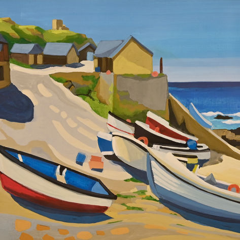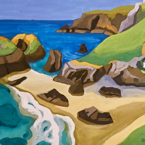 Julia Odell grew up in the bustling seaside town of Looe where the family home overlooked the estuary, so was surrounded by the natural beauty of the area from childhood. Julia studied fine arts at St Johns in York and taught college and university level arts for many years in Yorkshire. She now, once again, lives and works on the border of Devon and Cornwall - surrounded by moody moorland and close to the stunning coastlines that inspire her landscape work. She not only enjoys interpreting the landscape itself, but studying people within the landscape, so it seemed a natural progression to combine the two. The diversity of life and land in the southwest allow her to explore her enjoyment for both.