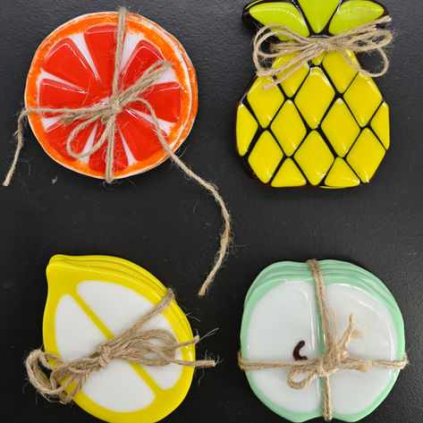 Lindsay Telling is a Bristol based artist, who also lives in Fowey for part of the year. To date her inspiration has come from the work of John Piper, Graham Sutherland, Kurt Jackson and Andy Goldsworthy, but more recently she has been inspired by the elements of spring and nature. In particular, the green, purple and cream husks of the wild parsley plant seen on her walks, has led to this series of platters and coasters. Lindsay works from photographs and sketches and by using both clear and opaque glass has interpreted her findings into her range of work.