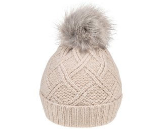 Ladies Pattern Knitted Bobble Hat/Faux Fur Pom Pom