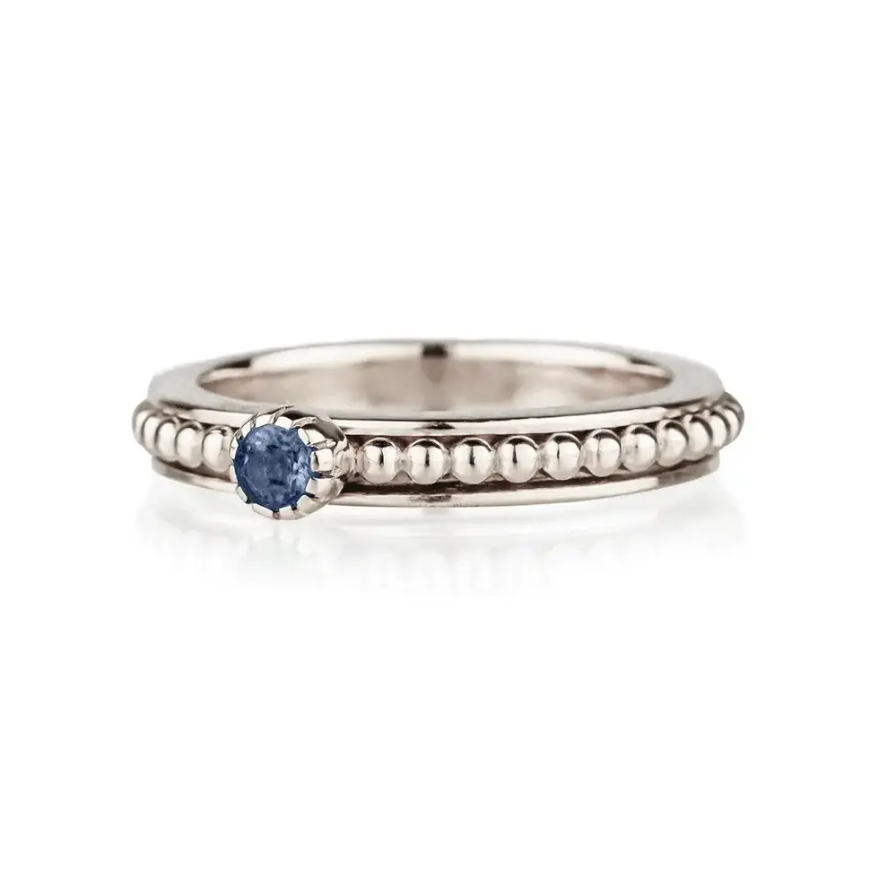 With fairly-traded tanzanite, the stone of transformation, the Lalita Tanzanite Spinning Ring will guide you on your journey. Made responsibly in small batches, this purple gemstone spinning ring shimmers with recycled silver and soothes with its spinning motion. Find your inner goddess with this ethical ring.